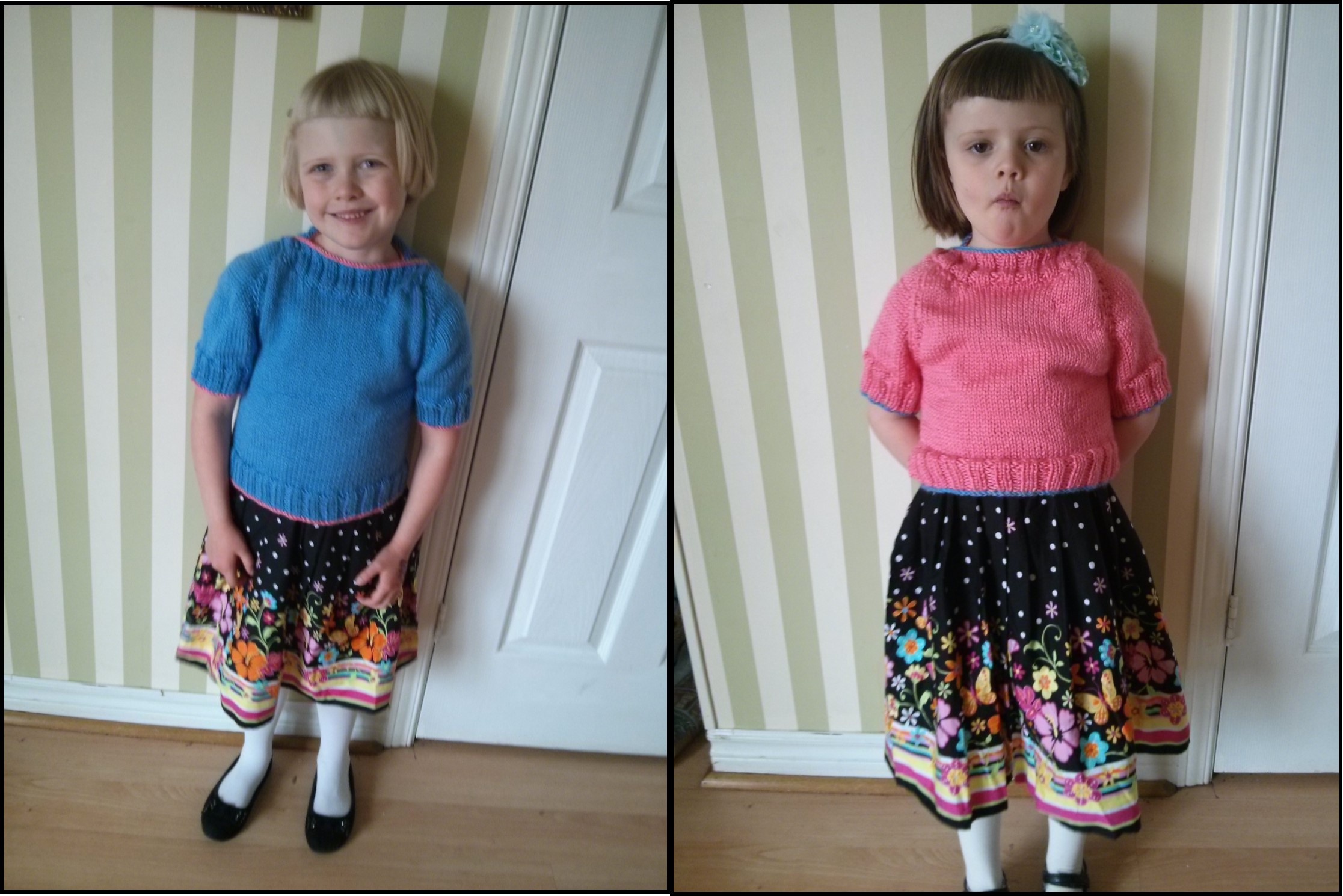 Raine & Athena on Good Friday modeling the sweaters I made them