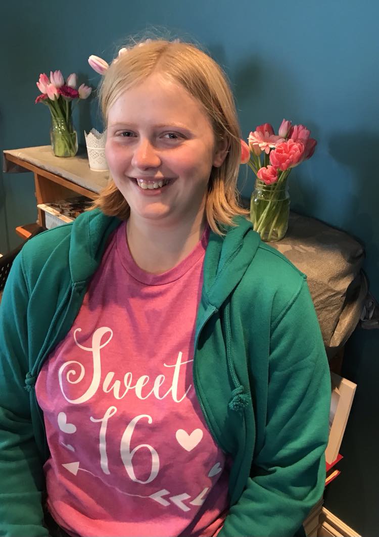 We invited a few families – the entire family not just the teens Raine is friends with. Turns out the party was the same weekend as the provincial homeschooling conference. Two of the moms had already made plans to be there. That altered the guest list – one family just dropped off their two teens, the other one the dad came with two of this children. My brother, his family, and my mom were there as well. Cora was immensely excited to have both of her grandmas together. We did a bit of a pot luck. I made cupcakes that were in cute little boxes. And I managed to get the main floor of the house painted before the party. It was on my winter to do list and the party offered a great deadline. The celebration went well. Raine was very happy to show her friends her horse and let them see our little farm.