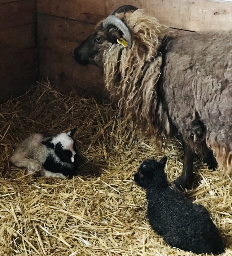 When we all returned home, Raine went to check on the animals. In the barn she found our Icelandic sheep, Josephine, with two newly birthed ram lambs. What a lovely Easter surprise!