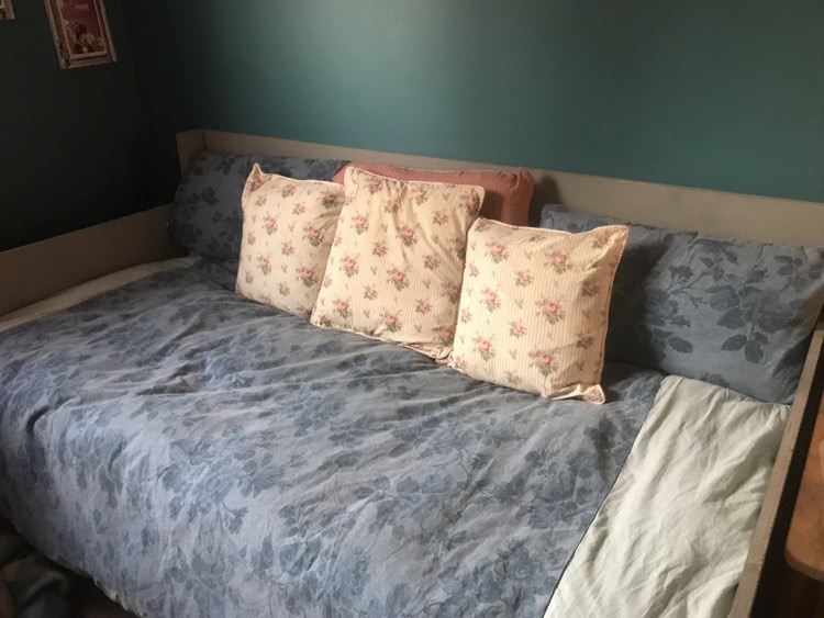 I made myself a daybed. It’s simplistic but functional. Downsizing from a queen sized bed will give me space to set up the knitting machine and a loom in my room. That hasn’t happened yet. I still need to reorganize all the boxes that were under my previous bed. But I am happy with the day bed and increased floor space which is currently occupied by clean laundry that I haven’t gotten away yet.