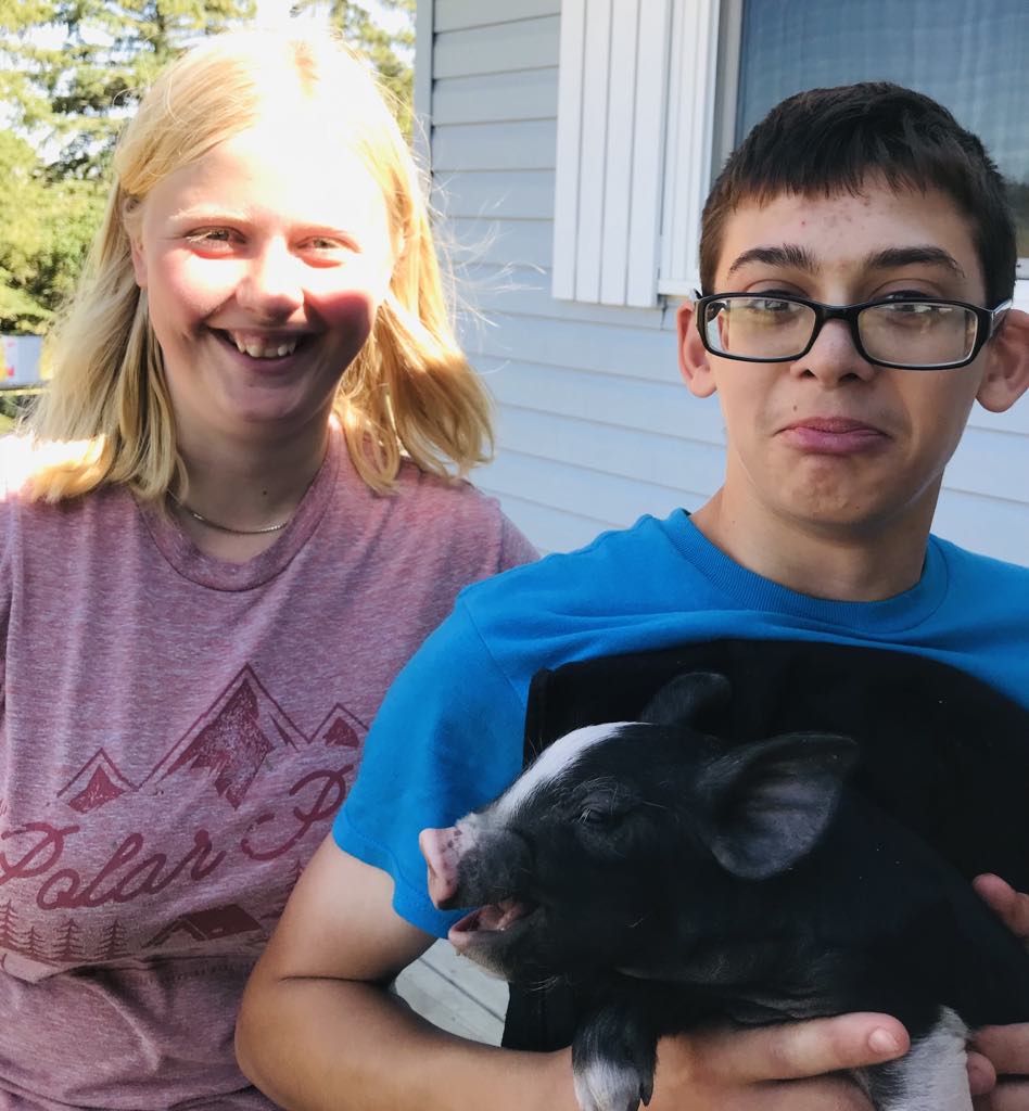 The four piglets that were born at the end of June were all boys. A family living about an hour away bought two of them. The other two we have kept to eventually end up in the freezer. That meant castrating them. Turns out it’s not as quick and easy as the youtube videos portray. It was a challenge. Since I’m still rather squeamish, my role was to hold the piglet upside down. This I did with my eyes closed. Then Raine was to make the incision and remove the necessary pieces. But she just couldn’t do it. The incision was easy enough but the rest of it wasn’t. She asked her grandfather and uncle but they became woozy at the sight of it. Then we enlisted the help of Athena and the girls’ cousin. Eventually, they got the job done. What an ordeal. That prompted us to put the adult pigs up for sale. We didn’t want to castrate ever again. There haven’t been any buyers yet so we may be doing it all again in a couple of months. Maybe by then we’ll all be better at this sort of thing.