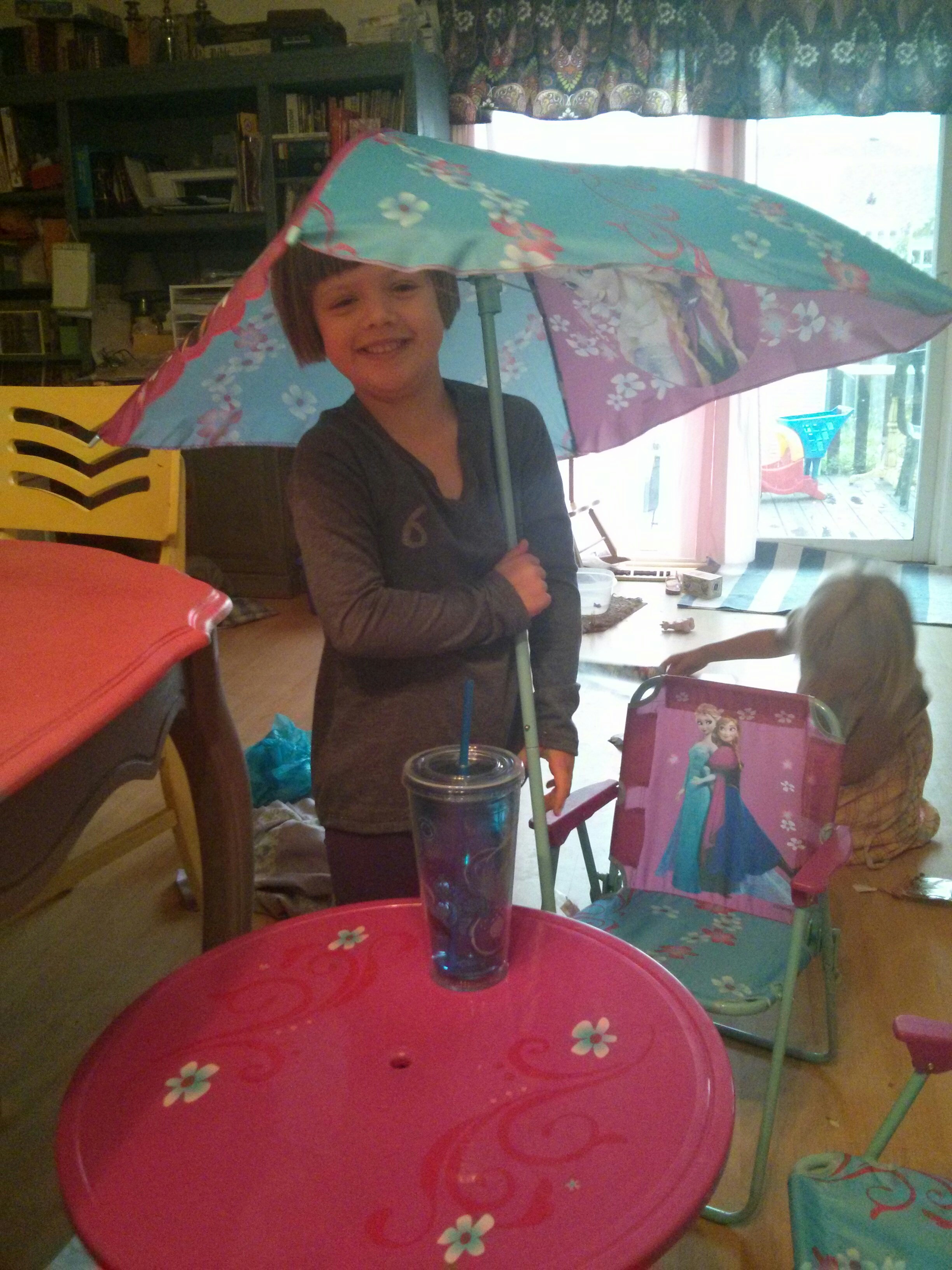 Our foster child was leaving early the day of Athena’s birthday for an overnight visit, so we had cake the night before. Then opened presents after breakfast. Athena picked out the colours for the tutu I made her. She spent the morning playing with her new toys (including a Frozen patio set).